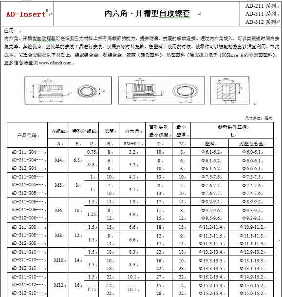 內六角?開槽型自攻螺套